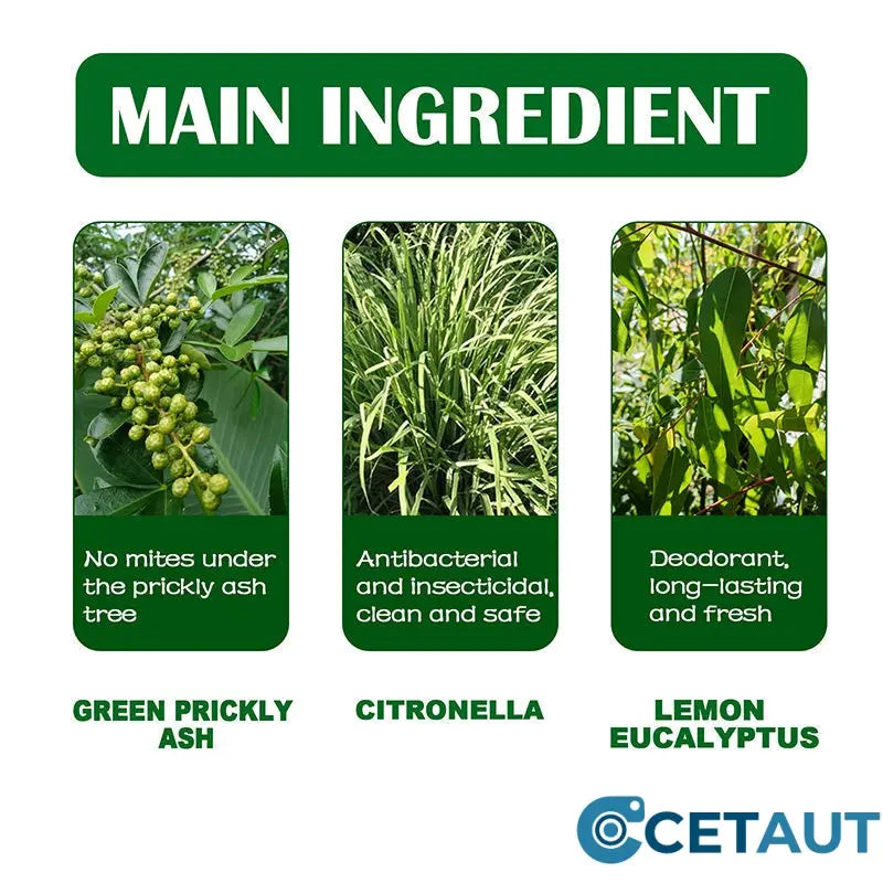 NATÜRLICHE ZUTATEN - Wir extrahieren die Essenz von Pflanzen, in denen Milben nicht überleben können. Citronella wird wegen seiner antibakteriellen und insektiziden Eigenschaften hinzugefügt. Zitroneneukalyptus ist für die desodorierende Wirkung enthalten. Die Formel ist sicher und ungiftig.