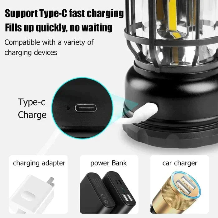 Retro-LED-Campinglampe, aus wasserdichtem Material + ABS-Lampenschirm. Kann im Regen verwendet werden. Es ist auch stoßfest und rutschfest. Sie sind sehr langlebig.